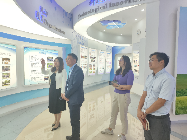 侯永清教授、华南农业大学动物科学学院副院长王文策教授在王丽、阮栋研究员的陪同下参观了动科所成果展厅。