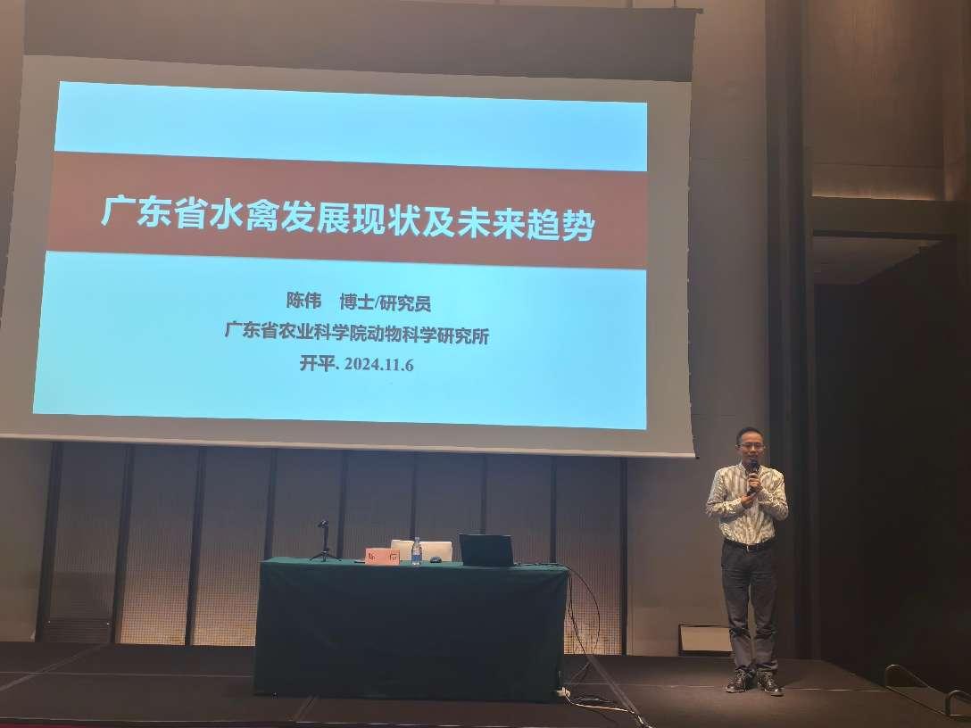 陈伟以题为“广东省水禽发展现状及未来趋势”,从我国水禽产业现状、广东水禽产业现状、广东水禽面临的挑战和机遇及未来发展趋势等四个方面进行了汇报,重点对全国及我省以鸭鹅为代表水禽品种、养殖、加工及销售等产业现状进行了分析,并对当前我省水禽面临的品种选育、环保养殖、饲料营养等方面问题提出了建议和举措,为我省水禽产业健康发展提供建设性思路。