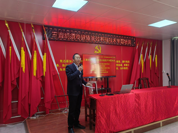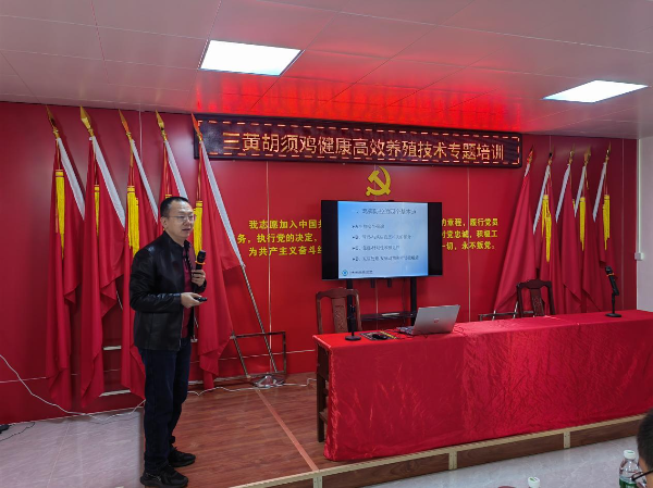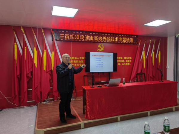 为进一步落实好色TV 与博罗县和五华县实施“百千万工程”和绿美广东生态建设科技支撑框架协议精神,促进三黄胡须鸡良种良法的推广应用,提高三黄胡须鸡养殖辐射区五华县安流镇养殖企业和专业户的科学养殖技术水平,助力当地农民增收及产业高质量发展,近日,由动科所、安流镇人民政府、乡村振兴驻安流镇帮镇扶村工作队联合主办,博罗县建农畜牧有限公司、五华县振中动物饲养有限公司协办的“三黄胡须鸡健康高效养殖技术专题培训”在五华县安流镇河沿村村委会举办。