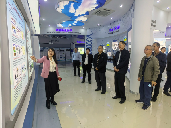 调研组一行参观了动科所创新成果展厅。马现永详细介绍了动科所在历史发展、人才队伍、创新平台、学科建设、成果转化、科技合作及服务“三农”等方面的情况。钟保迁对省农科院科技人员为阳江市乡村振兴工作提供的技术支持表示感谢,并希望进一步加强合作。