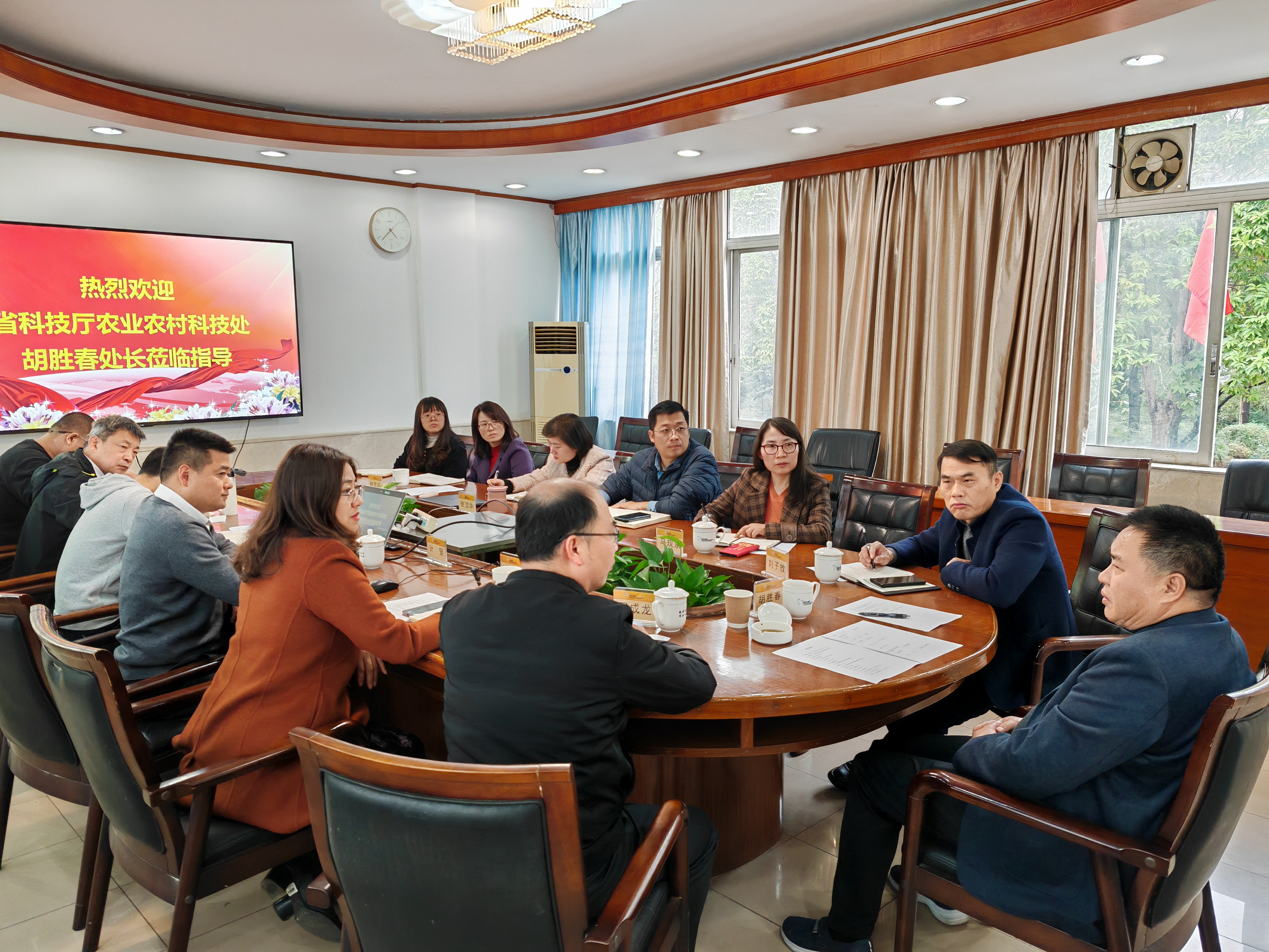 2月26日下午,省科技厅农业农村科技处处长胡胜春到动科所调研交流。动科所所长罗成龙,党委书记刘子放,副所长马现永、王丽,相关部门负责人参加座谈交流。