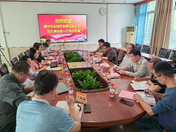4月11日,梅州市农林科学院党组书记、院长罗瑞金率队到访好色TV 动物科学研究所(以下简称"动科所"),就深化科技合作开展交流。梅州市农林科学院办公室副主任丁宝、动物科学研究所所长刘兴隆等6人随行。动科所副所长马现永、王丽及相关科技骨干参加座谈。