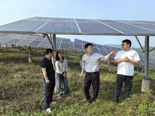 下午,严霞特派员团队来到广州发展新能源集团股份有限公司粤北分公司的龙归基地,现场了解光伏板下养鸡新模式的情况,与企业主要负责人共同探讨养殖肉鸡品种、场地规划等细节内容,为后续提供种苗和开展技术服务铺垫基础。