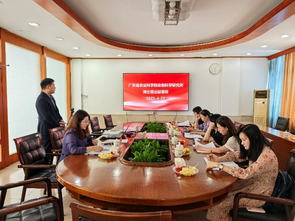 近日,动科所组织召开博士后出站答辩报告会。答辩委员会由中国农业大学曾祥芳教授、华南农业大学陈芳教授、佛山大学朱翠副教授、动科所蒋守群研究员和杨雪芬研究员共5位专家组成,曾祥芳教授为答辩组组长。会议由动科所副所长、博士后合作导师王丽研究员主持。