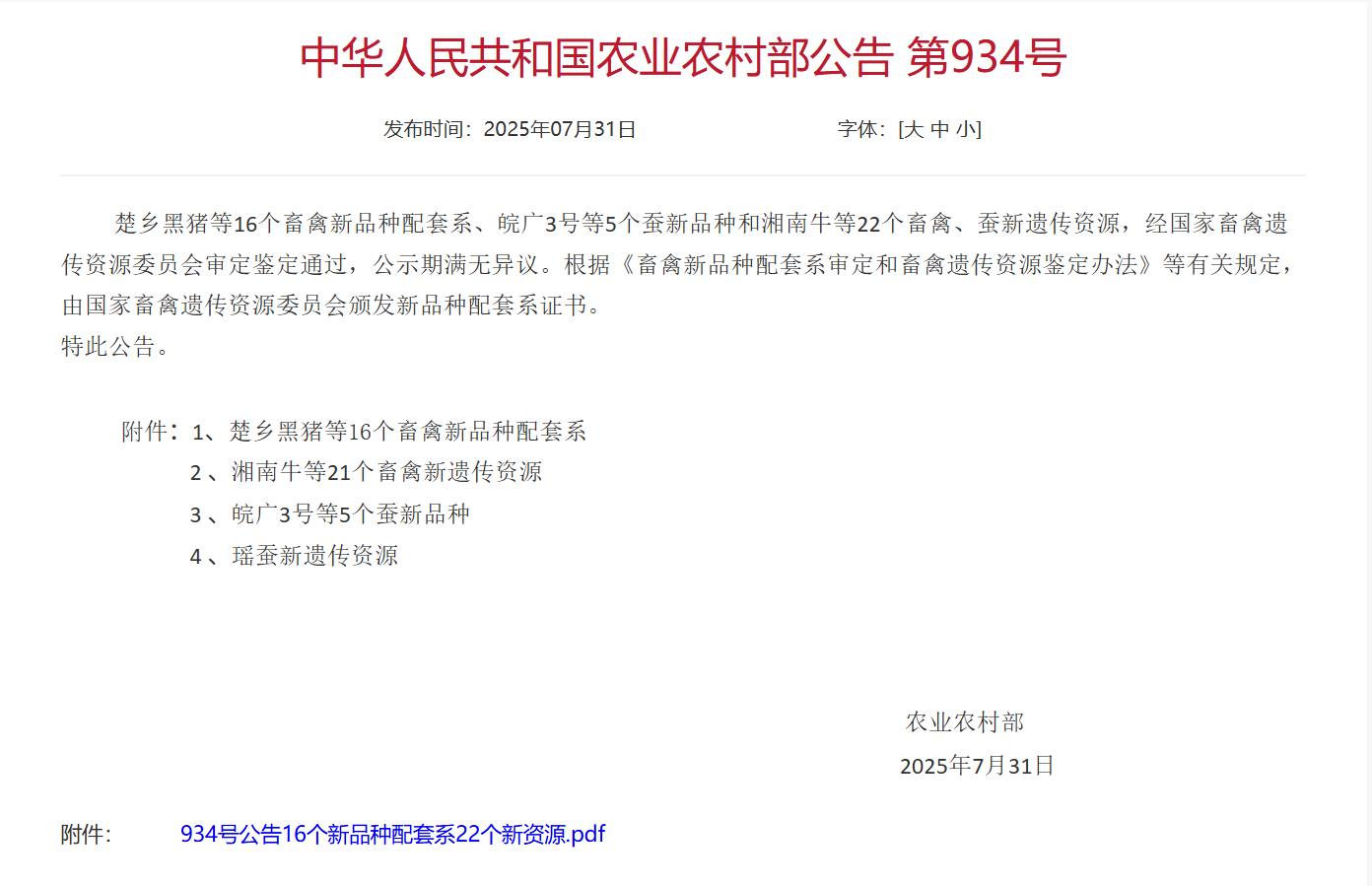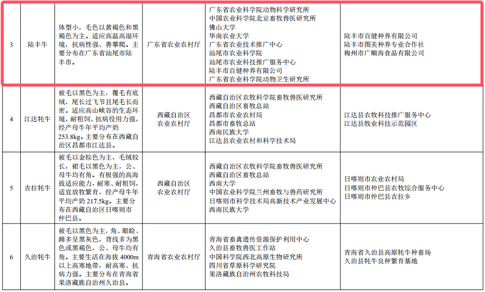 国家农业农村部第934号公告中显示,广东省优良特色地方品种牛——陆丰牛,成功通过第四届国家畜禽遗传资源委员会第一次全体会议的审定与鉴定。这一里程碑式的成果标志着陆丰牛正式获得国家的认可与保护。