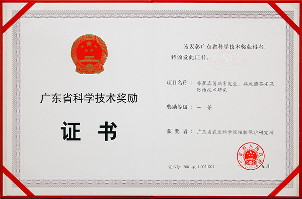 2002年广东省科技进步一等奖--香蕉真菌病害发生、病原菌鉴定及防治技术研究