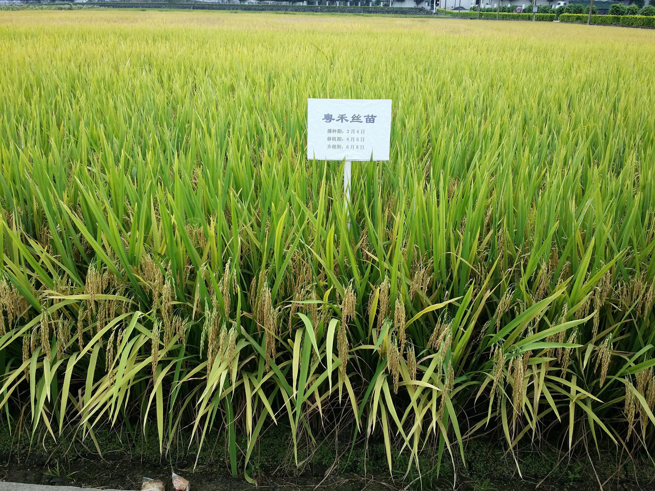 粤禾丝苗为感温型常规稻品种。晚造全生育期比对照种粤晶丝苗2号短1~3天。丰产性较好,米质鉴定为国标优质2级和省标优质2级,高抗稻瘟病,中抗白叶枯病,耐寒性中。2014年通过广东省品种审定,2017年、2018年入选广州市主导品种