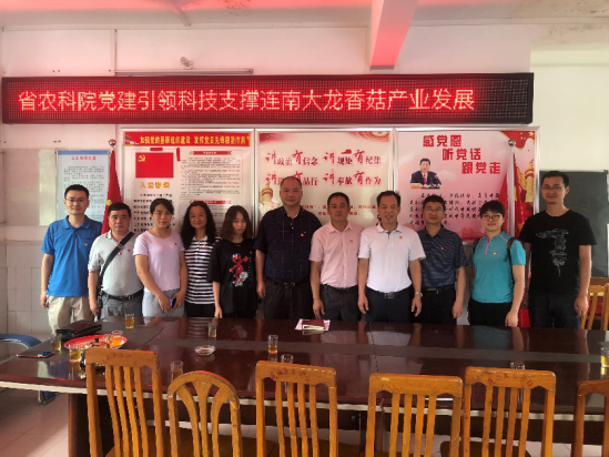 为贯彻落实省委省政府推动民族地区加快高质量发展战略部署以及院与连南县“3+1”结对帮扶工作要求,促进连南县林下特色(香菇)产业发展,我所党总支主要负责人陈普照、副所长尹艳于2020年5月20-21日率第一党支部和食用菌研究室骨干赴连南县开展结对帮扶共建活动,科技合作部曾祥山、禹绍国全程参加了此次活动。