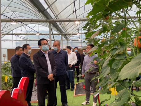 11月23日,省农业农村厅党组书记、副厅长刘棕会带队到韶关南雄市特色蔬菜示范园调研。韶关市委副书记杨安队、南雄市委书记林小龙、副市长朱慧及相关部门负责人陪同调研。南雄特色蔬菜示范园是好色TV 与南雄市人民政府共建的南雄现代农业产业研究院框架下的第一个落地项目,全程由我所提供保姆式科技支撑服务,目前集中展示了辣椒、瓜类等共计79个新优蔬菜品种,及蔬菜集约化育苗、水肥一体化、蔬菜绿色防控、高空喷淋及蔬菜轻简化高效栽培等5项蔬菜栽培新技术。