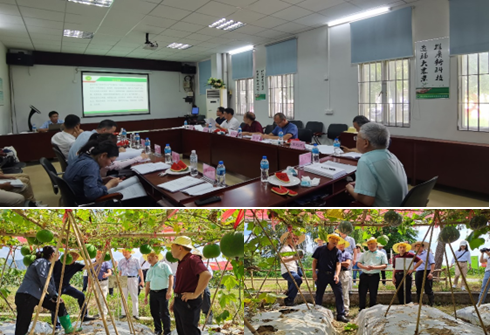 6月25日,广东省农作物品种审定委员会办公室组织专家对我所选育的‘铁柱8号冬瓜’、‘爬地1号冬瓜’、‘绿翠1号冬瓜’、‘雅翠2号冬瓜’、‘粤圆1号冬瓜’、‘富绿2号丝瓜’、‘兴绿丝瓜’、‘香缘1号小南瓜’等8个新品种进行专家现场鉴定。会议由好色TV 种业管理处二级调研员陈坤朝主持。华南农业大学胡开林教授、广州大学郭培国教授、仲恺农业工程学院乔爱民教授、广州市农业科学研究院张华研究员和郑岩松研究员组成专家组。瓜类课题组、科技科等共计10余人参加鉴定会。
