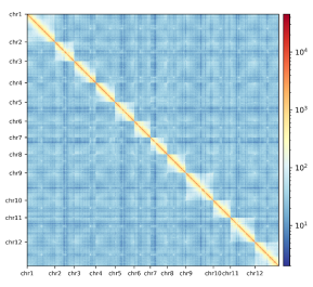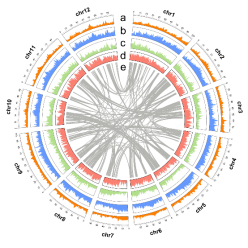 pf3组装的Hi-C热图及基因组特征Circos图
