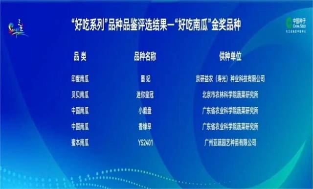 我所南瓜品种入选 2024 中国种子(南繁 硅谷)大会“好吃南瓜”金奖品种