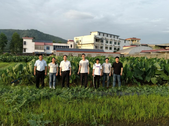 在今年春耕时期,我所科技特派员团队向始兴县罗坝镇上营村韶关甜宝农业开发有限公司赠送了一批香芋种苗。通过两个月的种植,为了评估种植效果,5月31日至6月1日,在驻罗坝镇帮镇扶村工作队协助下,我所省农村科技特派员郭巨先研究员、刘文睿研究员、黄旺平助理研究员、彭洋洋博士和符梅博士一行五人再次来到罗坝镇,开展蔬菜种植技术指导。