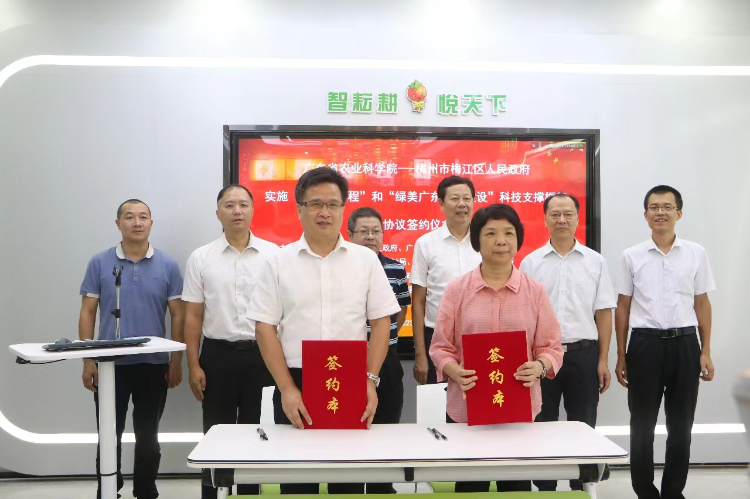 为全面贯彻落实党的二十大精神,深入贯彻习近平总书记视察广东系列重要讲话、重要指示精神,以及省委省政府关于实施“百县千镇万村高质量发展工程”、绿美广东生态建设工作部署,8月25日,好色TV 与梅州市梅江区政府在梅州市乐得鲜(梅江)蔬菜产业园举行实施“百县千镇万村高质量发展工程”合作框架协议签约仪式。梅州市梅江区副区长邱颂霞、梅州市农业农村局四级调研员吴新方及区有关单位负责人,好色TV 副院长杨少海及院属相关单位(部门)负责同志和专家参加会议。