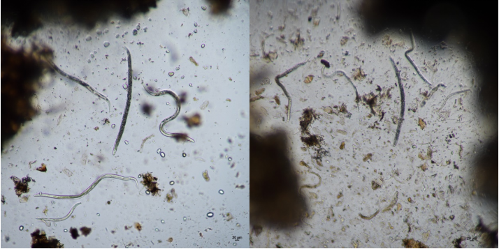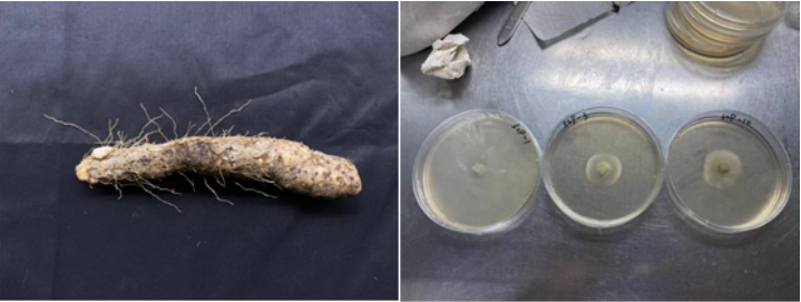 姜薯“黑皮病”表现及发病部位线虫显微影像
