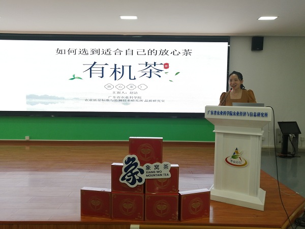 赵洁博士作《如何选到适合自己的放心茶》科普知识讲座,介绍了喝好茶的重要性、有机茶的定义及有机放心茶的生产标准及溯源过程。
