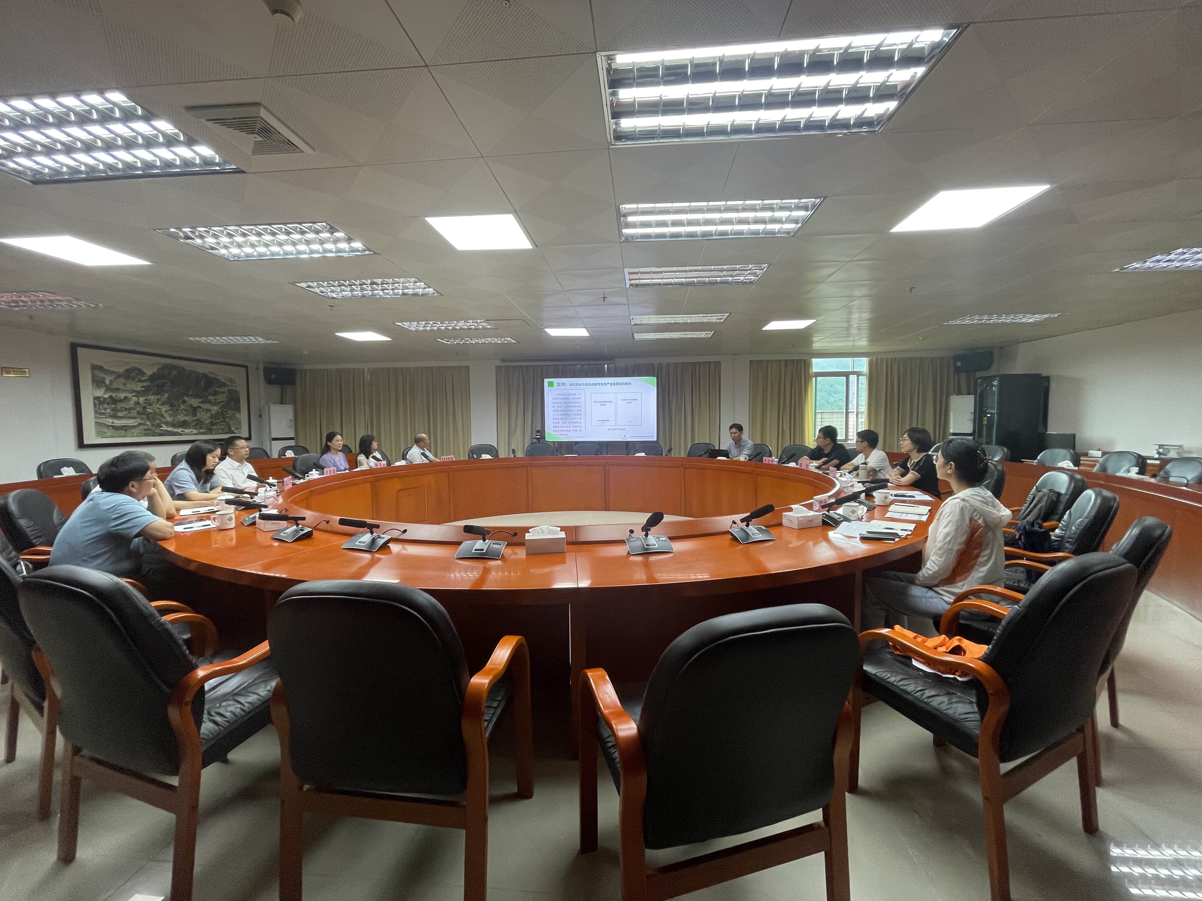 座谈会上,周灿芳等介绍了经信所基本情况以及研究团队在种业、农业信息化、专项债服务等方面的工作情况和成效。