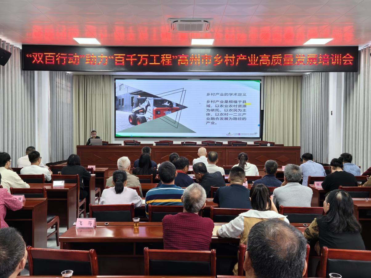 近日,经信所积极响应院关于实施“双百行动”以科技支撑高州市高质量发展的号召,所党总支书记李伟锋带领团队深入高州市分界镇及潘州街道开展了系列科技服务活动,并举办“双百行动”助力“百千万工程”乡村产业高质量发展培训会,分界镇镇村干部和农业从业者50余人参加培训。