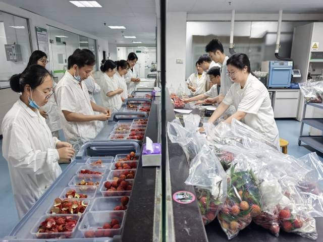 与此同时,惠州市农产品质量安全监督检测中心的实验室对荔枝样品开展了质量安全测评,进行了76种农药残留类定量检测,确保参赛荔枝的质量安全。