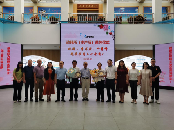 时光荏苒,风雨同舟。为体现组织关怀,增强干部职工退休的政治荣誉感和单位归属感,增进广大退休干部家国情怀,持续发挥余热,引导年青干部尊重老同志、老专家,学习老一辈科技工作者爱岗敬业、无私奉献的优良传统,激发党员干部职工干事创业的精气神,增强凝聚力、感召力和认同感。6月30日上午,动科所在办公大楼会议室为2025年退休的林琳、李书宏、叶秀峰等同志举行荣退仪式,动科所领导班子成员、所退休党支部支委、荣休同志所在部门主要负责人及所办公室相关同志参加活动。活动由所党委书记刘子放主持。