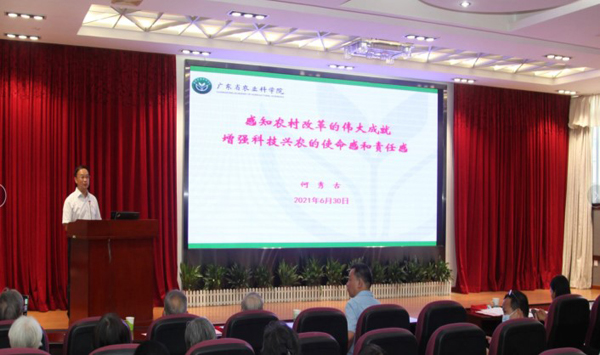何秀古围绕“感知农村改革的伟大成就,增强科技兴农的使命感和责任感”讲授专题党课。他从我国农村改革的光辉历史以及农业科技事业的发展、科技兴农工作的使命感三方面,阐述了伴随着农村的改革发展与农业科技事业发展的相互关系,强调进入新时代,作为新时代的农业科技工作者应有更迫切的使命感、自豪感和责任感,以科技支撑“三农”推动农业高质量发展。