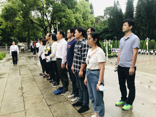 走进庄严肃穆的烈士陵园,这里的每一座纪念碑、雕像都留有一个动人的故事,每一位先烈都值得我们怀念。每到一座雕像前,姚文山都会给支部党员介绍他们英雄的事迹,并倡导我们要珍惜现在来之不易的和平发展环境,鼓励我们多学习,多思考,找准当下产业技术瓶颈,沉下心来攻坚克难,为推动加工所高质量发展贡献力量。最后,全体党员肃立在烈士墓壁前,向革命英烈行默哀礼并敬献鲜花,表达对先烈的缅怀之情。