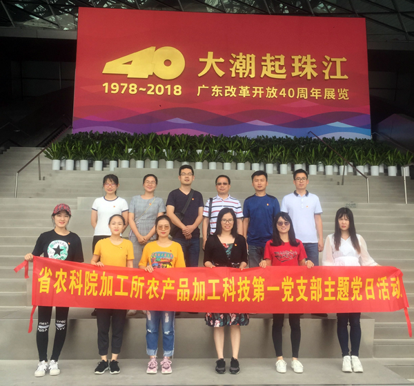 为深入学习贯彻习近平总书记视察广东重要讲话精神,加强对广东省改革开放40年历程的了解。5月31日,省农科院蚕业与农产品加工研究所农产品加工科技第一党支部组织本支部共12名党员,前往深圳开展“守初心、强使命、争先锋”主题党日活动,参观了“大潮起珠江——广东改革开放40周年展览”,在展览馆内,全体党员干部认真聆听了讲解员的讲解,依次参观了序厅、敢为人先勇立潮头、增创优势砥砺前行、走在前列当好窗口、尾厅等5个部分展示的照片、视频、实物等内容。通过观看,党员们深为广东40年来波澜壮阔的改革开放历程和取得的举世瞩目成就所震撼。广东是改革开放的排头兵、先行地、实验区,40年前,中国改革开放的总设计师邓小平支持广东先行先试、率先创办经济特区。广东改革开放先行者开拓者带领全省人民解放思想,在改革开放探索中先走一步,创造了许多全国第一;大胆闯、大胆试和“敢为天下先”的历史担当和“杀出一条血路”的奋斗精神鼓舞了科技党员们的干事创业增创新优势的信心。