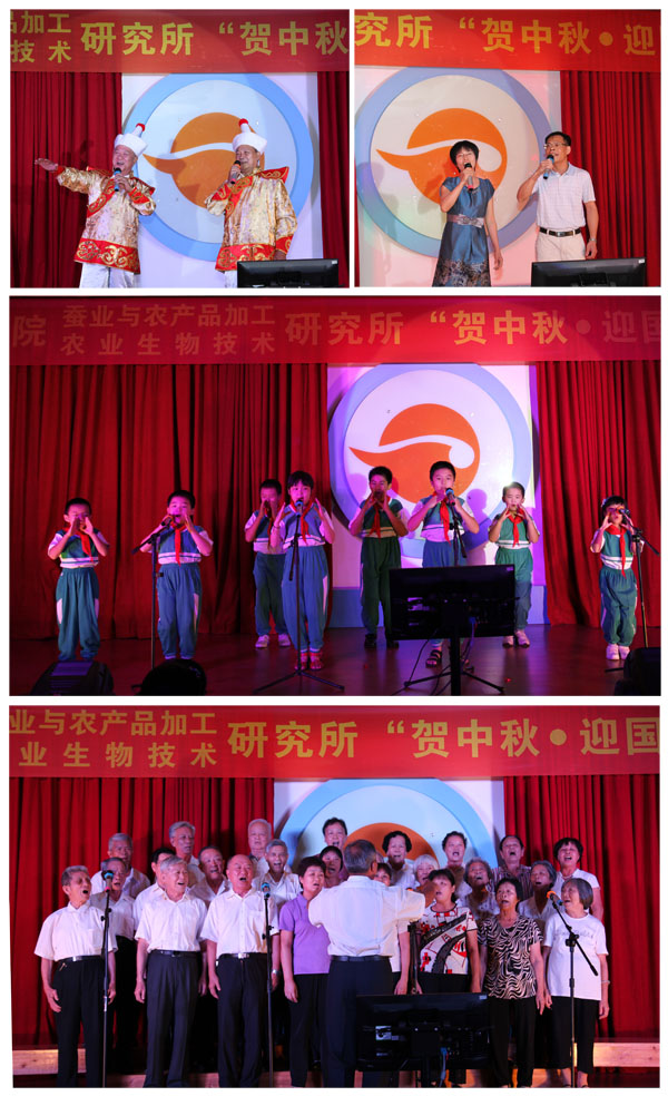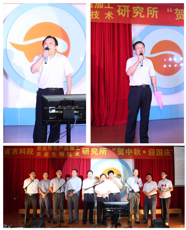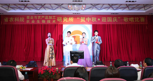 为庆贺一年一度的中秋国庆“双节”,进一步弘扬我所优良的传统文化,丰富员工的业余文化生活,省农科院我所于9月26日晚在所会议厅隆重举行了2012年“贺中秋迎国庆”歌唱比赛。院党组副书记、纪检组长、直属机关党委书记廖森泰,院党组成员、副院长肖更生,院科技管理处处长徐志宏、副处长刘建峰、刘军,院机关党委办主任庄文才、副主任张劲松,院计划财务处处长陈卫东等领导应邀莅临晚会现场,所领导班子成员、院科技管理处及机关党委办全体工作人员、我所全体职工及职工家属200多人参加了本次歌唱晚会。