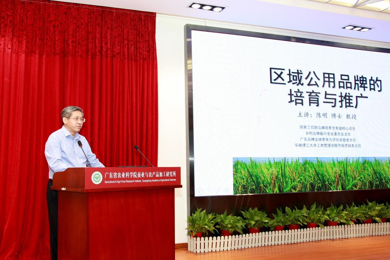 会上,来自华南理工大学工商管理学院市场营销系主任陈明作《区域公用品牌的培育与推广》主题培训,分享了区域公用品牌主要价值、存在的重点问题、对地区经济建设的拉动作用、培育模式等相关内容。