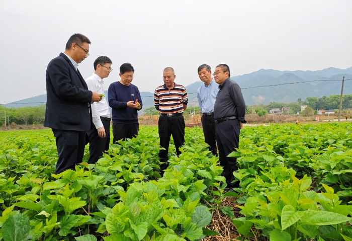 4月5日至7日,国家蚕桑产业技术体系桑树遗传改良与栽培研究室主任、重庆市蚕桑产业技术体系首席、西南大学教授赵爱春,高产优质品种改良岗位科学家、浙江省农业科学院蚕桑与茶叶研究所研究员吕志强,烟台综合试验站站长、山东省蚕业研究所研究员王照红,山东省蚕桑产业技术体系首席专家郭光等一行来粤开展体系岗站对接交流,并深入粤北蚕桑主产区调研当地蚕桑产业发展情况,指导企业开展春耕春管工作。在粤的国家蚕桑产业技术体系加工研究室主任、加工所所长徐玉娟,蚕蛹加工岗位科学家、加工所副所长邹宇晓,广州综合试验站站长王振江及相关团队成员等参加对接交流并陪同调研。