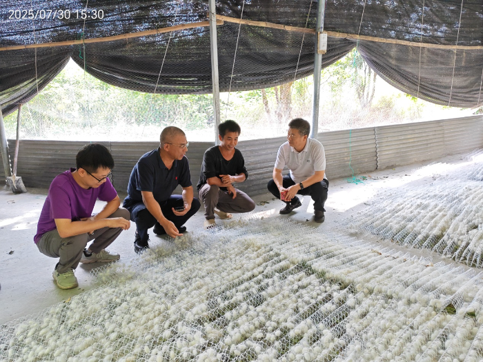 为科技助力乡村全面振兴,落实省“百千万工程”农村科技特派员重点派驻任务,近日,加工所驻阳山县黄坌镇农村科技特派员团队成员钟建武高级农艺师、吴剑安副研究员赴黄坌镇开展科技服务活动,为当地蚕桑产业提供技术支撑。