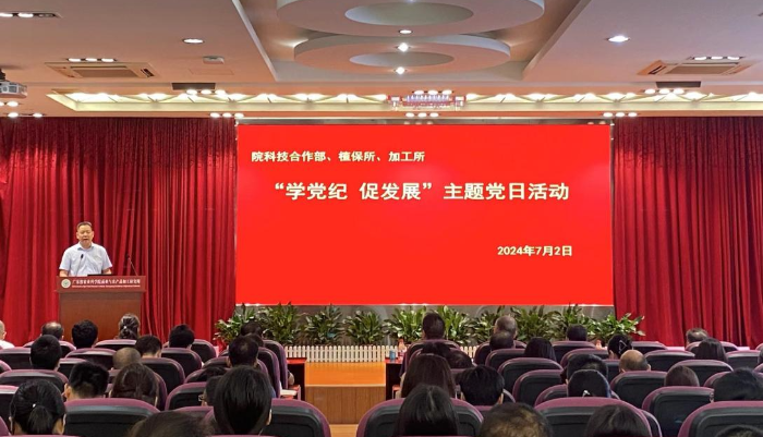 为进一步推动党纪学习教育走深走实,促进党纪学习教育同院所中心工作紧密结合,7月2日上午,院科技合作部、植保所与加工所联合开展“学党纪 促发展”主题党日活动,160余名在职党员参加。院党委委员、副院长何秀古出席会议并讲授专题党课。会议由加工所党委书记姚文山主持。