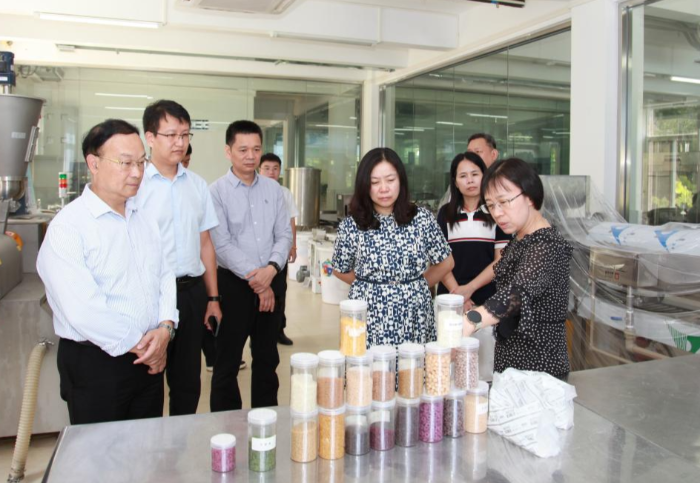 7月9日上午,广西壮族自治区乡村振兴外资项目发展中心副主任、粤桂协作办公室副主任杨媚率广西壮族自治区农业农村厅东西部协作考察团到加工所调研,好色TV 督查专员韦浩陪同。我院副院长何秀古,院科技合作部和加工所相关负责人参加调研。