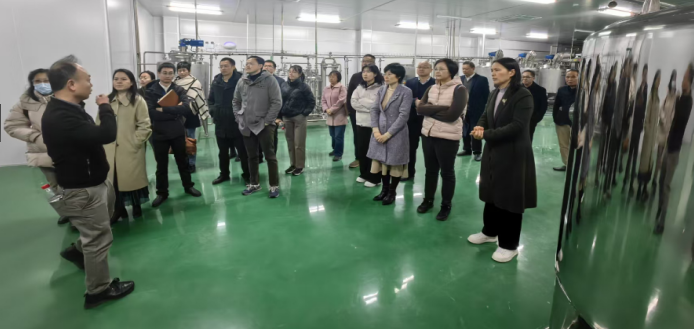 科技产业发展座谈会前,所领导班子带领中层干部参观了坐落在白云基地的新建设的超高压果汁、特医食品等生产线。会上,所属的广州力衡公司和广州宝桑园负责人汇报了企业发展现状及重点发展方向,参会人员就如何开展合作、协同推动科技成果在控股、全资企业转化等方面展开充分的讨论。