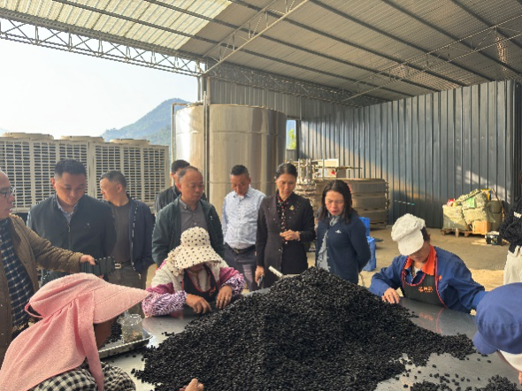 徐玉娟一行先后前往攀枝花田野创新农业科技有公司、攀枝花宝桑园健康食品有限公司、攀枝花四喜农业发展有限责任公司、四川黑金椹阳光农业有限公司、攀枝花市绿苑农业科技有限公司等企业调研指导,详细了解盐边县桑果产业现状、产业规模及企业发展经营、技术需求等情况,并与盐边县工商联、农业农村局、县供销社、县国有企业攀枝花滋味盐边食品科技集团有限公司等单位召开盐边县桑果产业高质量发展座谈会。