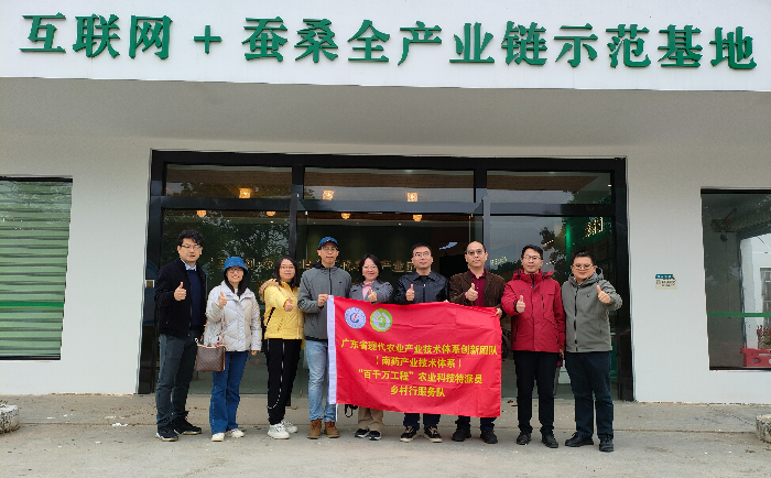 近日,省南药产业技术体系咨询专家刘军民教授、岗位专家王魁研究员、首席秘书陈昱帆研究员和科技骨干一行7人在岗位专家、加工所蚕桑南药与微生物资源加工利用研究室主任邢东旭研究员陪同下到加工所花都蚕桑全产业链示范基地考察交流。