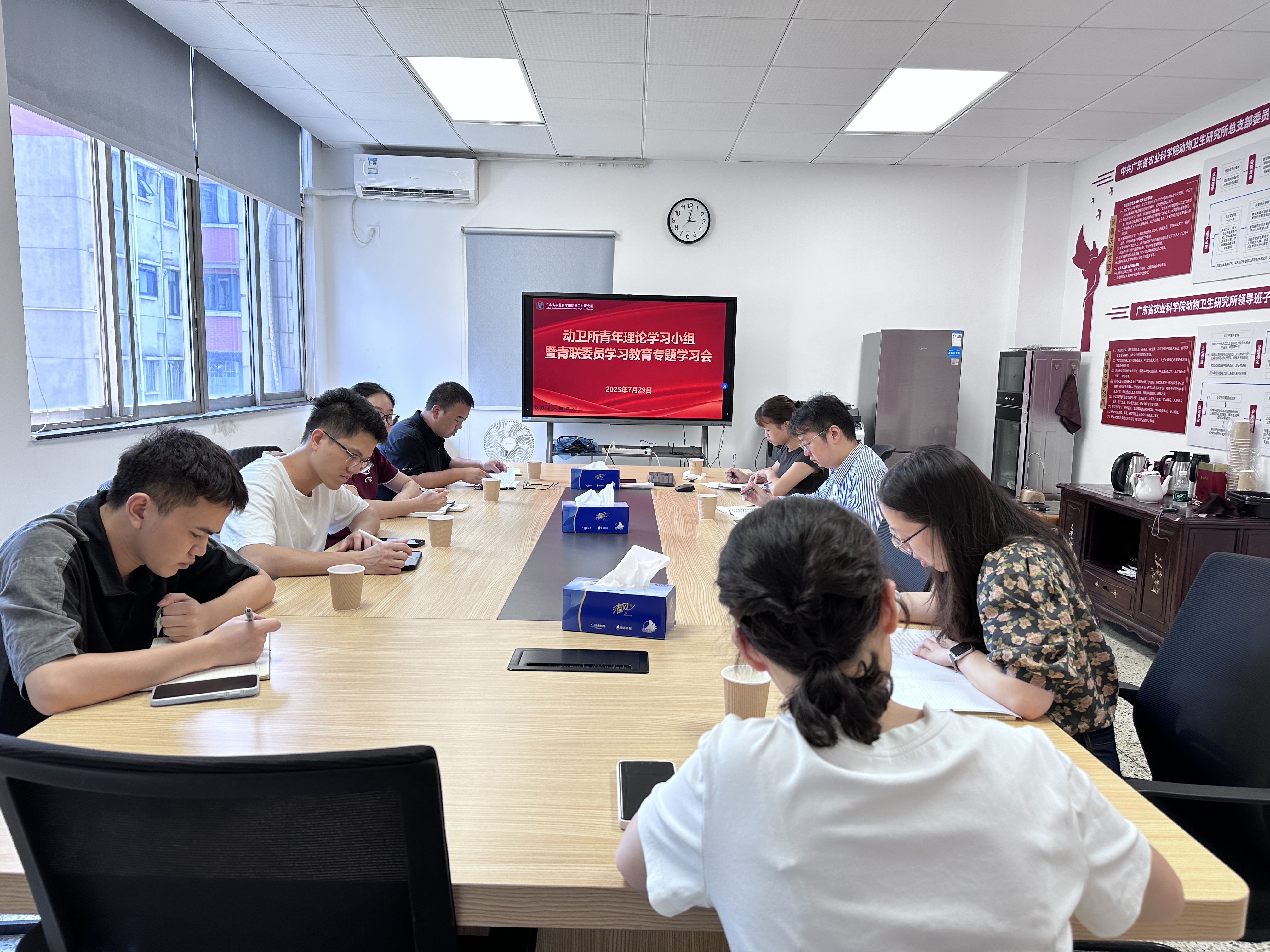 为推动深入贯彻中央八项规定精神学习教育走深走实,充分发挥青年理论学习小组带动促学作用,强化青年理论武装,引导广大青年干部筑牢思想根基、锤炼过硬作风、勇担时代重任,7月29日下午,动卫所召开青年理论学习小组专题学习会。会议由所青联主席曹雅琴主持,所党总支书记黄丽芸、所青联委员、所研究室青年科技骨干8人参加会议。