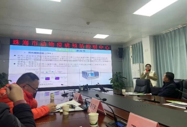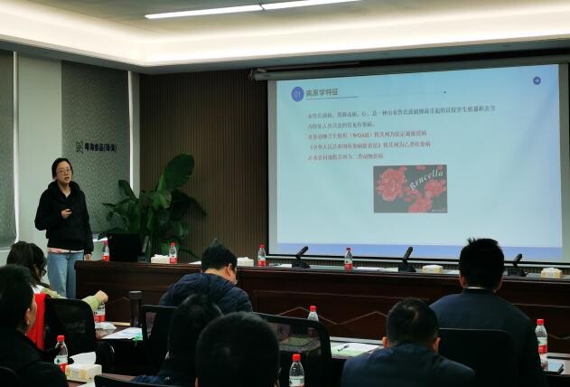 培训会上,陈晶对布病的流行病学、实验室诊断技术、防治措施等方面进行了详细讲解;中山市动物疫病预防控制中心李天宇博士结合自身工作分享了布病的流行病学调查、采样、诊断及监测净化技术经验;张翩对布病检测技术和抗原检测卡使用方法等进行了介绍。