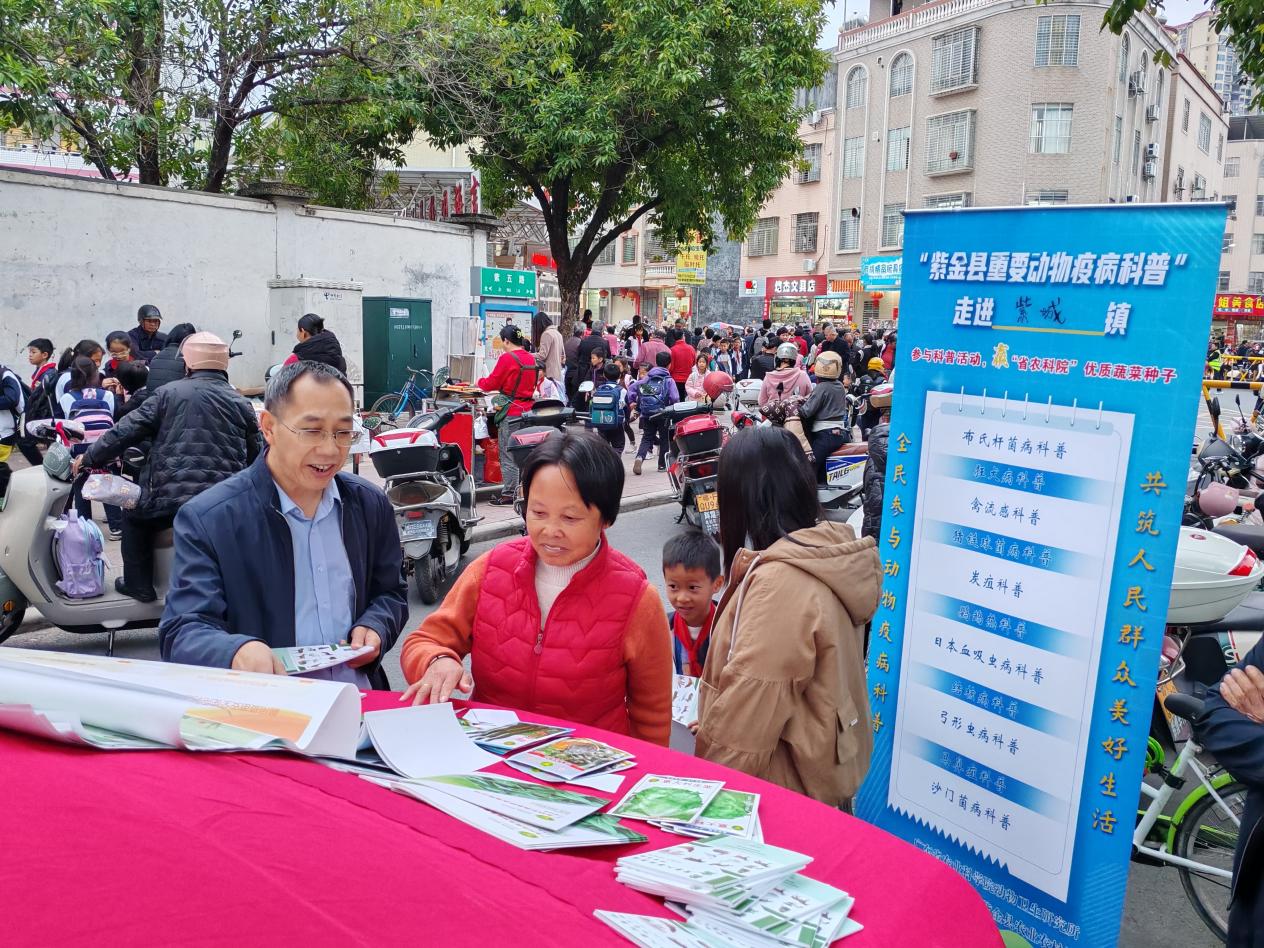 紫金县农业农村局黄远和副局长在致辞中强调,动物疫病防控工作在紫金县农业农村发展中占据着举足轻重的地位。近年来,随着经济全球化进程的加速,动物及动物产品的贸易往来日益频繁,动物疫病的传播风险显著增加,紫金县面临的动物疫病防控压力日益增大。开展动物重要疫病及人畜共患病技术培训和科普活动是当前农业农村工作的重点,是深入贯彻习近平总书记“人病兽防、关口前移”重要指示的具体行动,对保障紫金县畜牧业健康稳定发展和公共卫生安全具有深远的现实意义。