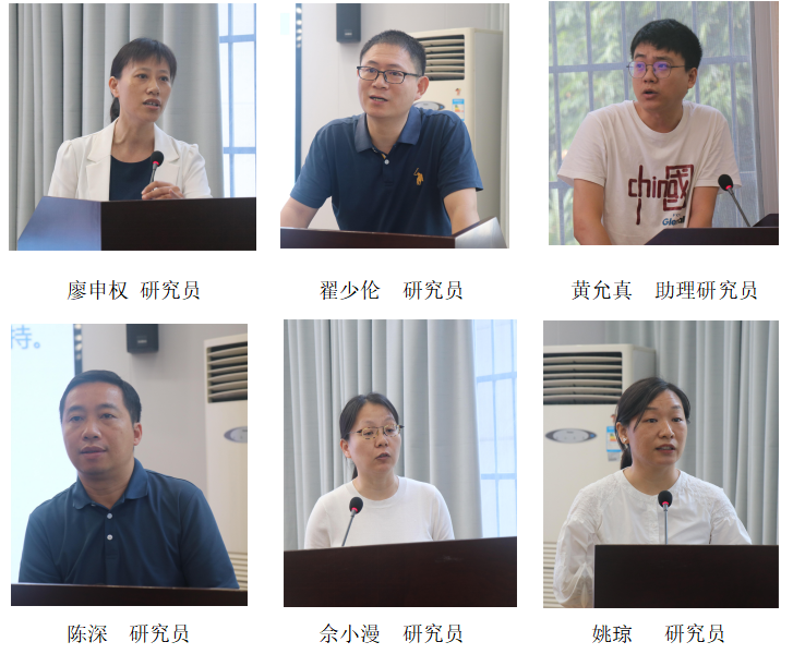 会上,何秀古代表中心就项目2023年度完成情况及取得成果、经费使用情况、协同创新成效、组织管理及下一步工作计划等内容作了整体汇报。6位课题负责人分别从课题基本情况、科研进展情况、任务指标完成情况、协同创新成效、经费使用情况及下一步计划等方面进行了中期汇报。专家组听取汇报并审阅相关资料,对每个课题依次质询、点评,并给出了中肯建议和中期考核评分。