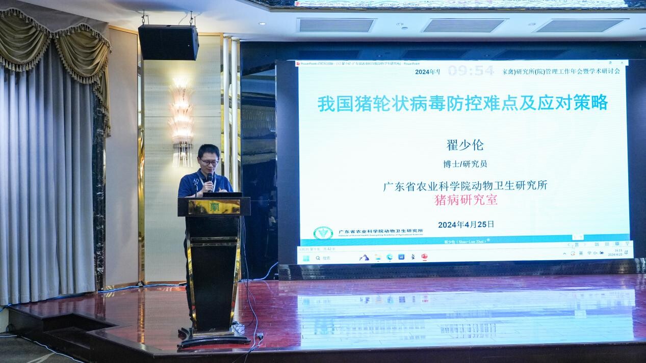 孙铭飞代表动卫所作了“踔厉奋发 共赢未来——动卫所2023年工作总结和2024年工作计划汇报”的管理工作经验交流汇报,围绕所2023年科技创新、团队建设、人才培养、成果转化、乡村振兴等工作进行交流,并就2024年的发展思路与各兄弟单位互动交流。翟少伦作了题为“我国猪轮状病毒防控难点及应对策略”的学术报告,得到了与会人员的高度关注。