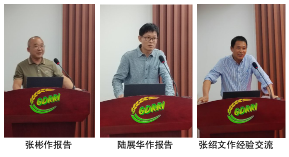会上,稻作新技术研究室主任张彬作《水稻栽培及丰产高效生产技术》报告,详细讲解了水稻各生长关键期的栽培要点;水稻抗病育种研究室主任陆展华作《水稻主要病虫害防控技术》报告,介绍了水稻几种常见病虫害的症状特征和防控要点;杂交水稻研究开发中心科研辅助工张绍文介绍了水稻科研生产经验。与会人员就水稻生产工作中遇到的问题进行了讨论交流。