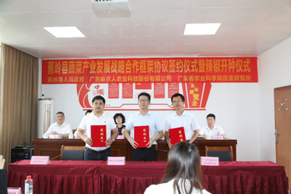 5月19日,蕉岭县蔬菜产业发展战略合作框架协议签约仪式暨辣椒开种仪式在蕉岭县新铺镇潘田村举行。蔬菜所茄果类研究室李涛主任、衡周博士、梅州分院办公室主任李倩、马雅美博士参加了会议。